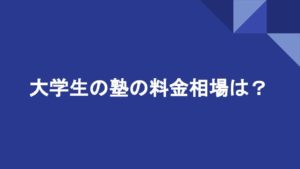 例えば。大学生のための単位取得のサポート塾などの場合です。その場合の金額の目安としては、30万円〜60万円前後の金額となります。塾の中には月額の料金体系なので月に5万円程度をアピールする塾もありますが、学習期間は最低でも半年ほどは行うことを考えると総額は1科目あたり30万円以上の金額になることが多いです。また、原則、大学の授業は専門性が高く、個別指導でなければ指導できないという問題もあります。高いと思う方もいると思いますが、専門性の高い個別指導である点と大学の1年間の学費が私立の場合は100万~120万であることを考えると妥当な料金となります。